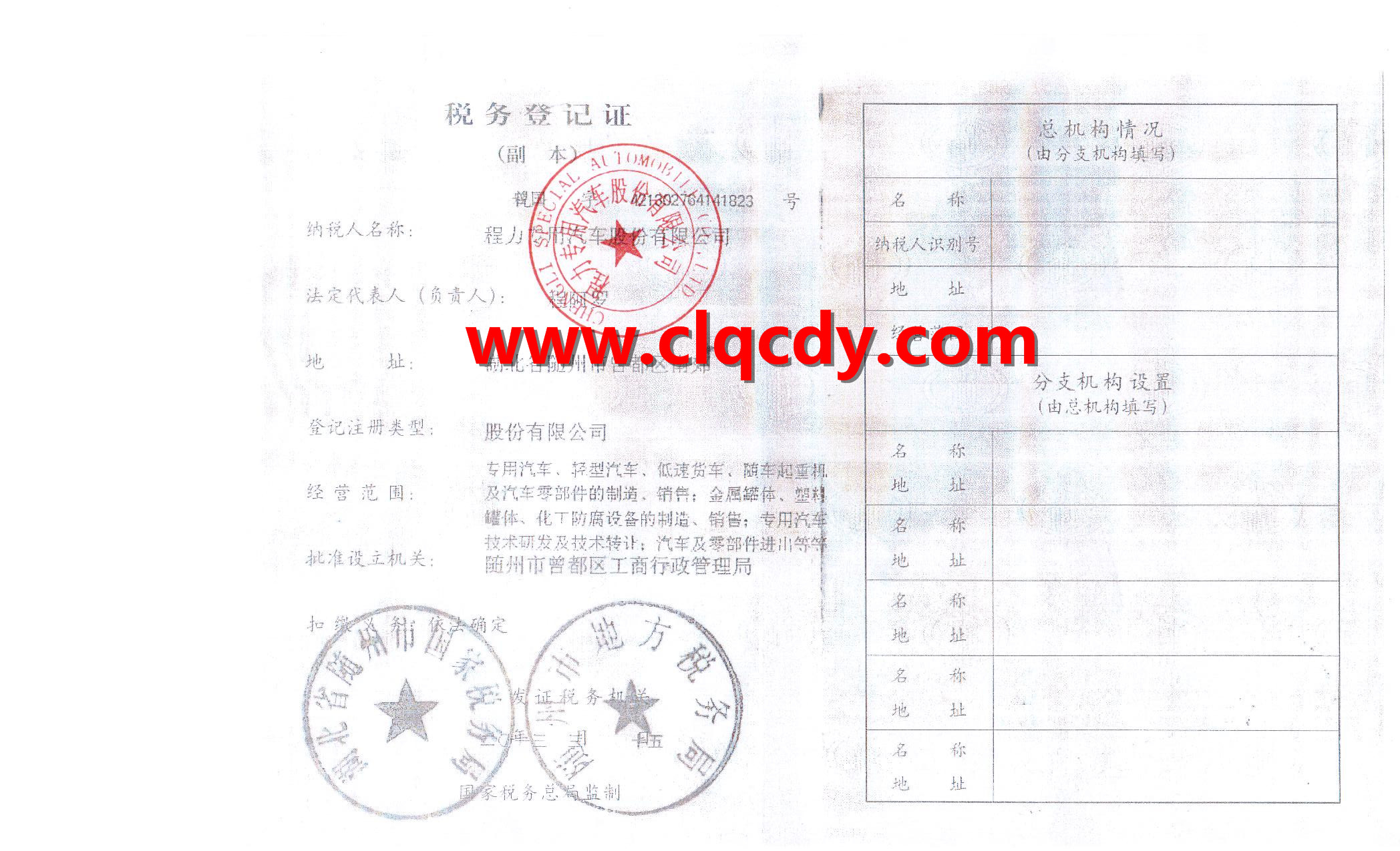 湖北程力營業執照、組織機構代碼、稅務登記證、開戶證明。