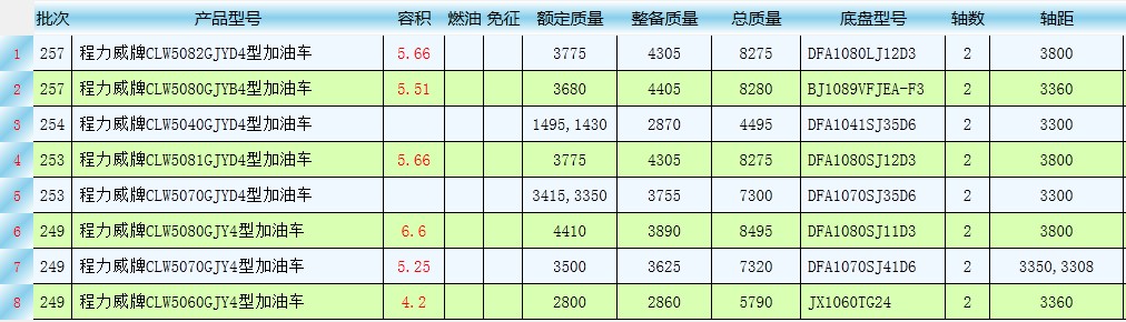 湖北程力國四加油車公告有哪些型號?湖北程力王經理整理如下: