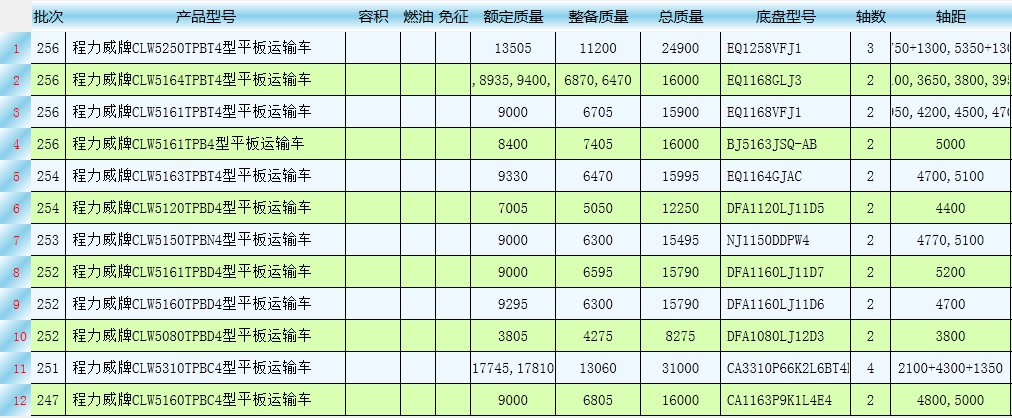 湖北程力平板運輸車國四產(chǎn)品公告型號有哪些?整理下表可見: