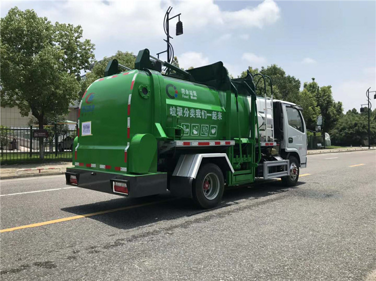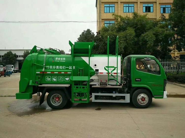 餐廚垃圾車,又稱餐余垃圾車、余廚垃圾車或者泔水車,是用于收集和運輸生活垃圾、食品垃圾(泔水)及城市淤泥的專用車輛,改裝部分具有裝、卸垃圾自動化程度高、工作可靠、密封性好、裝載容積大、操作簡便、作業過程密閉,無污水泄露和異味的散發,環保性好等特點。可配裝載不同規格的標準垃圾桶,具有廣泛的適用性。 該車型外形美觀,性價比高、安全可靠、駕駛便捷。主要用于收集與轉運餐飲業、賓館、單位食堂等產生的餐廚垃圾,也可用于收集與轉運居民小區廚余和生活垃圾。 上裝由箱體、后門機構、密封鎖緊機構、推板機構、掛桶機構及操縱機構組成。 餐廚垃圾車主要性能及配置: 固液分離: 將桶裝餐廚泔水垃圾經專用提升架緩緩上提,在車頂部倒入車廂內,被投放的垃圾經過強有力的推板擠壓,垃圾箱底部與推鏟板面設置大量過濾孔,可真正實現箱內餐廚垃圾固液的初步分離,被分離的液體進入箱體底部的污水箱,固體垃圾被壓縮儲存在罐體,體積變小,如此反復待裝滿后送至餐廚垃圾資源優化處理廠卸料。餐廚垃圾裝載由垃圾桶提升系統完成,該系統具有垃圾桶鎖止結構,裝卸安全可靠。垃圾桶與垃圾投入口銜接好,保證裝卸過程中餐廚垃圾不溢撒、不遺漏。垃圾投入口與推板之間有足夠距離,推板與罐體內表面設有密封裝置,避免餐廚垃圾投入過程及分離過程中溢到推板后方。 液壓系統由泵、液壓閥和順序閥以及各種功能的液壓油缸、高低壓管路組成。關鍵部件可選用原裝進口,保證產品工作可靠、安全 罐體內分上、下兩層,下層為固液分離后污水收集箱,污水箱兩頭高,中間低,設有排污口,以保證污水排放干凈。 湖北程力國六5方多利卡福瑞卡餐廚垃圾車(廂式方罐)程力威牌CLW5073TCA6型餐廚垃圾車CLW5040TCALS6型餐廚垃圾車多方位圖片: