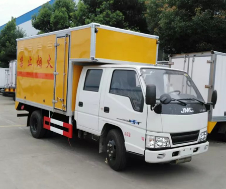 1、爆破器材運(yùn)輸車底盤的型號可分為:東風(fēng)、江鈴、江淮、奧鈴、時(shí)代、歐曼、慶鈴、解放等。驅(qū)動(dòng)形式可分為:雙驅(qū)動(dòng)和四驅(qū)動(dòng),按額定載質(zhì)量有0.5噸—9.9噸(國防科工委要求最大上戶噸位不超過10噸)。 2、廂體分為兩部分:A:運(yùn)輸炸藥;B:運(yùn)輸雷管(抗暴容器);C:炸藥,雷管同時(shí)運(yùn)輸(廂體必須隔倉,分倉運(yùn)輸,加裝抗爆容器)。廂體為雙層金屬骨架結(jié)構(gòu),外部為冷扎鋼板,內(nèi)壁采用鋁合金板蒙面,夾層為隔熱阻燃材料填充。設(shè)置對開門,如需安裝抗暴容器則增開側(cè)門,側(cè)壁設(shè)有防雨功能自然通風(fēng)窗口,以使廂內(nèi)外空氣流動(dòng),廂體內(nèi)部做防靜電處理,廂體底部與廂內(nèi)前部鋪有阻燃導(dǎo)靜電膠板,并與底盤等電位連接,通過車輛后端的導(dǎo)靜電裝置與大地相連,可防止靜電火花的產(chǎn)生和車輛靜電及時(shí)釋放,提高爆破器材運(yùn)輸車的安全性。廂體內(nèi)部前面和側(cè)面裝有固定拉環(huán),與捆綁帶使用捆綁貨物以避免移動(dòng),保證安全。 3、 感煙報(bào)警器:是感測車廂內(nèi)火情的專用裝置,安裝在車廂內(nèi)頂部,并與駕駛室內(nèi)報(bào)警裝置連接,當(dāng)有火情煙霧出現(xiàn),在駕駛室進(jìn)行蜂鳴報(bào)警通知駕駛員,保證及時(shí)消除險(xiǎn)情。 4、防盜報(bào)警器:為了保證安全,在車廂后方和側(cè)面開設(shè)有門,在各門器框上方安裝有門磁開關(guān)報(bào)警器(根據(jù)用戶要求選裝防盜監(jiān)視器。行車記錄儀等)當(dāng)廂門被打開時(shí),駕駛室內(nèi)的蜂鳴器發(fā)出報(bào)警聲音,不使用時(shí)可將駕駛室內(nèi)的控制開關(guān)關(guān)閉。可保證在行駛過程中,整車始終處于受控狀態(tài)。 5、整車發(fā)動(dòng)機(jī)排氣裝置采用前置式,并安裝有排氣火花熄滅器(防火罩),防止熱源對爆炸物產(chǎn)生不良影響。 6、底盤上裝有兩條拖地導(dǎo)靜電膠帶,廂體外側(cè)安裝示廓標(biāo)記燈以及手提滅火器等安全裝置。 7、車身顏色為黃色,并有“嚴(yán)禁煙火”和“爆”字樣,貼有反光標(biāo)識。 |