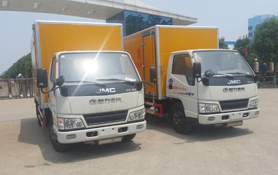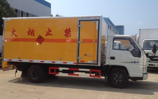 專用功能說明: 1、爆破器材運輸車底盤的型號可分為:東風、江鈴、江淮、奧鈴、時代、歐曼、慶鈴、解放等。驅動形式可分為:雙驅動和四驅動,按額定載質量有0.5噸—9.9噸(國防科工委要求最大上戶噸位不超過10噸)。 2、廂體分為兩部分:A:運輸炸藥;B:運輸雷管(抗暴容器);C:炸藥,雷管同時運輸(廂體必須隔倉,分倉運輸,加裝抗爆容器)。廂體為雙層金屬骨架結構,外部為冷扎鋼板,內壁采用鋁合金板蒙面,夾層為隔熱阻燃材料填充。設置對開門,如需安裝抗暴容器則增開側門,側壁設有防雨功能自然通風窗口,以使廂內外空氣流動,廂體內部做防靜電處理,廂體底部與廂內前部鋪有阻燃導靜電膠板,并與底盤等電位連接,通過車輛后端的導靜電裝置與大地相連,可防止靜電火花的產生和車輛靜電及時釋放,提高爆破器材運輸車的安全性。廂體內部前面和側面裝有固定拉環,與捆綁帶使用捆綁貨物以避免移動,保證安全。 3、 感煙報警器:是感測車廂內火情的專用裝置,安裝在車廂內頂部,并與駕駛室內報警裝置連接,當有火情煙霧出現,在駕駛室進行蜂鳴報警通知駕駛員,保證及時消除險情。 4、防盜報警器:為了保證安全,在車廂后方和側面開設有門,在各門器框上方安裝有門磁開關報警器(根據用戶要求選裝防盜監視器。行車記錄儀等)當廂門被打開時,駕駛室內的蜂鳴器發出報警聲音,不使用時可將駕駛室內的控制開關關閉。可保證在行駛過程中,整車始終處于受控狀態。 5、整車發動機排氣裝置采用前置式,并安裝有排氣火花熄滅器(防火罩),防止熱源對爆炸物產生不良影響。 6、底盤上裝有兩條拖地導靜電膠帶,廂體外側安裝示廓標記燈以及手提滅火器等安全裝置。 7、車身顏色為黃色,并有“嚴禁煙火”和“爆”字樣,貼有反光標識。 |