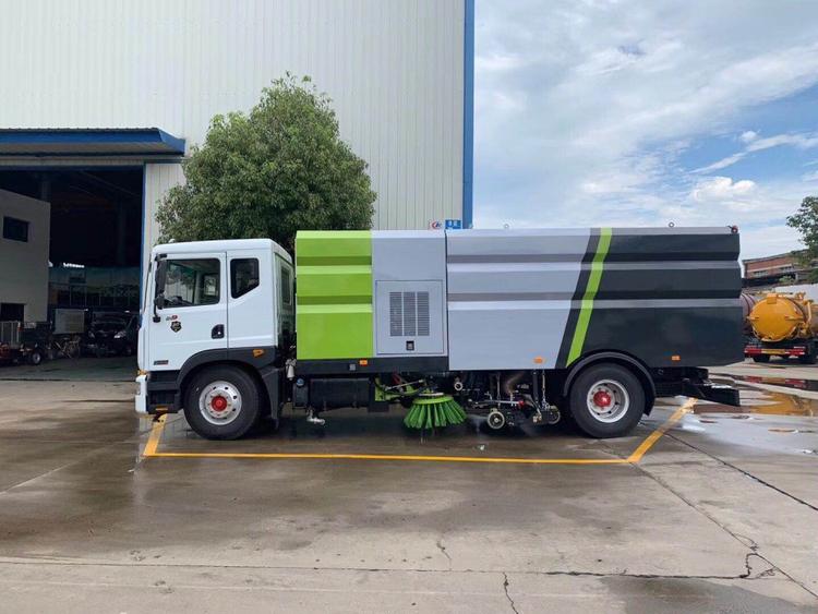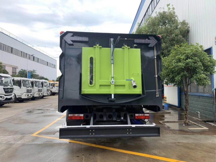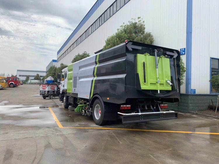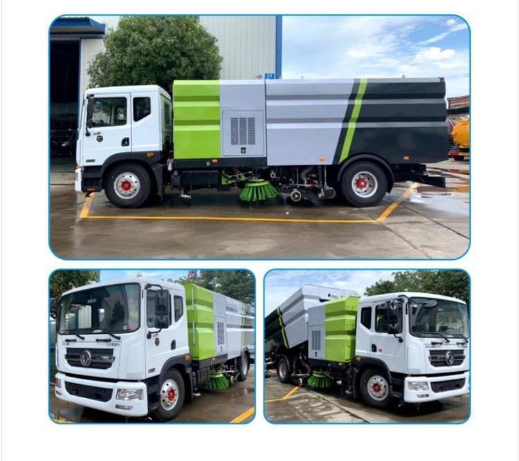 湖北程力東風(fēng)D9洗掃車(國六) 底盤配置: 采用東風(fēng)D9系列新款駕駛室,3950mm軸距,搭載國六(國VI)玉柴200馬力柴油發(fā)動機/康明斯210匹馬力柴油發(fā)動機,6檔變速箱,9T后橋,295真空胎,方向助力、斷氣剎、電動窗、中控鎖、ABS,原裝空調(diào),GB7258新規(guī)。 湖北程力東風(fēng)D9洗掃車(國六)上裝配置: 帶2個中置掃盤;中置超寬吸嘴;雙層吸塵筒; 康明斯170馬力副發(fā)動機;臺灣液壓閥;大力馬達;德國高壓水泵 (前沖/側(cè)噴/中噴/后噴霧)/側(cè)沖洗水槍/垃圾箱自潔裝置); 萬向高壓路沿清洗;威龍低壓泵(前沖),氣動球閥控制; 4mm不銹鋼垃圾箱;不銹鋼水箱;德國控制器;尾部箭頭燈; 機油、垃圾箱、水箱均帶防溢或低位報警裝置;倒車及洗掃狀態(tài)室內(nèi)監(jiān)視器; 多種語音提示;倒車自動保護、防傾倒垃圾翻車保護、檢修安全保護; 20m高壓沖洗卷盤;刷臂轉(zhuǎn)動機構(gòu)使用德國進口高新耐磨工程隔套,免打黃油; 冷彎無縫液壓油管;運動控制器一鍵電腦控制。洗掃寬度3.5m;吸入粒度p110mm。 湖北程力東風(fēng)D9洗掃車(國六)多方位圖片: