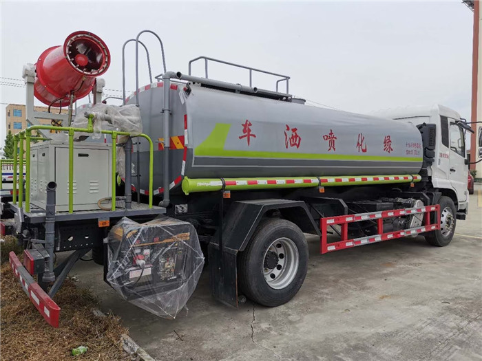 東風(fēng)天錦12噸30米霧炮車亮點(diǎn): 底盤配置:采用原裝東風(fēng)天錦底盤,軸距4700或者5000,國六康明斯210馬力發(fā)動(dòng)機(jī),東風(fēng)6檔變速箱,900R20鋼絲胎帶備胎,氣剎,斷氣剎,方向助力,離合助力,原裝空調(diào),電動(dòng)玻璃,中控鎖,東風(fēng)原廠4通道ABS。改裝配置:采用4mm國標(biāo)碳鋼板縱縫焊接一次卷制成型,罐內(nèi)設(shè)防浪隔板防止水浪沖擊,有效容積12-14立方可選,配60/90大功率灑水泵,管道采用大口徑無縫鋼管+大口徑球閥,標(biāo)配14米前沖,后灑側(cè)噴功能,35米平臺水炮,后平臺加裝30米霧炮機(jī)及8.5KW柴油專用副發(fā)電機(jī)。 霧炮機(jī)參數(shù):射程30米,風(fēng)機(jī)電機(jī)3KW,水泵電機(jī)3KW,噴霧流量20L/min,工作壓力1.5-3.5MPa,霧粒度50-150微米,360°水平旋轉(zhuǎn),-10~45°上下俯仰角度,手動(dòng)+遙控控制,霧炮機(jī)尺寸:1300*700*1600mm 湖北程力國六東風(fēng)天錦12方-14方綠化噴灑車|霧炮抑塵車|灑水車程力威牌CLW5161GPS6WL型綠化噴灑車CLW5180GPSE6型綠化噴灑車圖片價(jià)格: