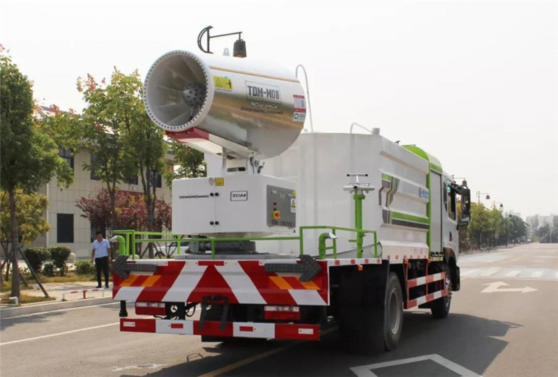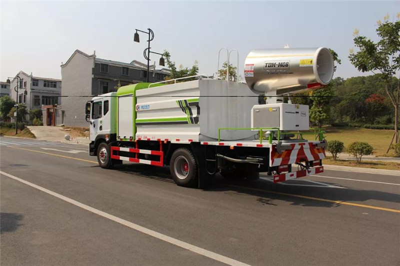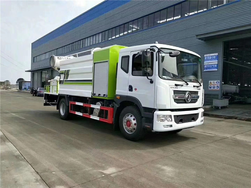 底盤配置:采用國六東風新款多利卡D9系列底盤生產,軸距4500mm,底盤發動機為康明斯230馬力,295真空胎,東風6檔變速箱,國六排放標準,罐體容積:10立方,罐體鋼板采用Q235碳鋼鋼板,采用方形瓦楞設計,外觀大氣靚麗,后工作平臺加裝高效率車載式風送噴霧機,噴藥炮霧化效果好,可遠程噴霧,東風多利卡D9抑塵車帶前沖后灑、側噴、平臺高炮、自流閥及消防接頭各1個、標配億豐泵或金龍泵,可選裝50-100米噴霧機。 上裝配置:罐體容積10立方,罐體為方形罐,罐體內部做防腐,主管路鍍鋅,帶前部沖洗路面噴灑裝置、后部扇形降塵噴灑裝置,兩側面噴灑裝置,帶后部工作平臺、平臺上安裝綠化灑水炮(炮噴射形狀可調),可調直沖狀、大雨、中雨、毛毛雨,可連續調節,采用中聯唯佳大流量水泵,消防接口可自流,音樂喇叭,50-100米噴霧機組。 噴霧機配置:TDM-M08型,可無線操作,及手動操作。根據需求選配的霧炮機霧化距離在60-120米不等(靜風室內距離),實際射程:(霧化射程會受濕度、溫度、風速等各方面天氣因素的影響,另外天氣干燥地區一部分在空中被蒸發掉)。CLW-100型60米,副發電機組功率50(Kw),風機功率15(Kw),不銹鋼多級離心泵功率5.5(Kw)。100米無線操作,霧化距離60米(靜風室內距離)實際射程:(霧化射程會受濕度、溫度、風速等各方面天氣因素的影響,另外天氣干燥地區一部分在空中被蒸發掉)。 湖北程力國六東風D9方罐抑塵車程力威牌CLW5180TDYD6型多功能抑塵車圖片價格: