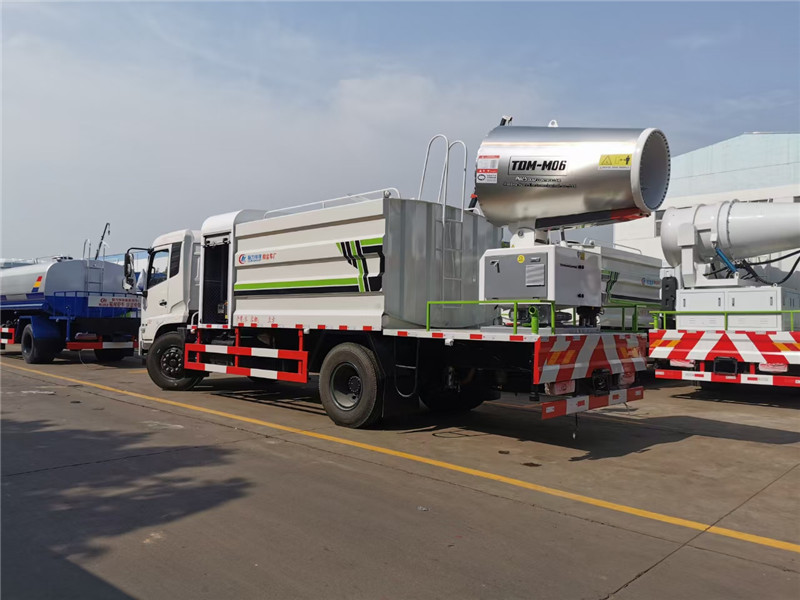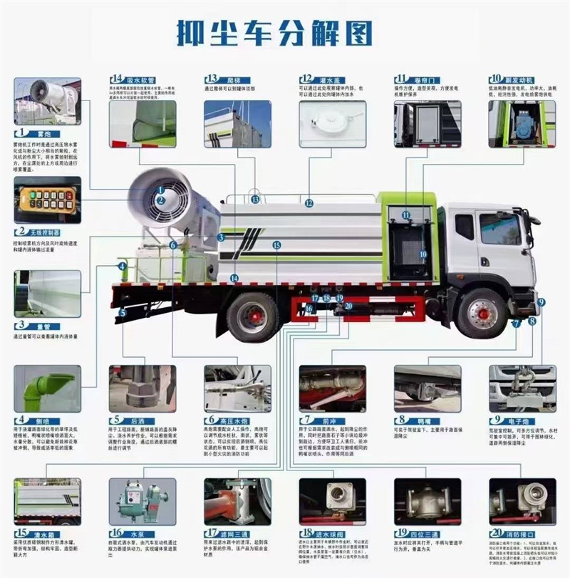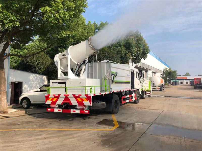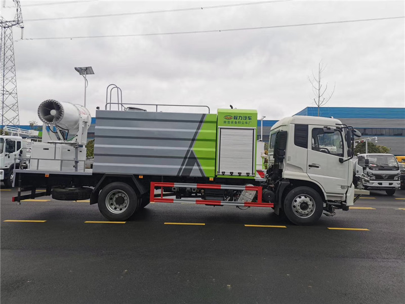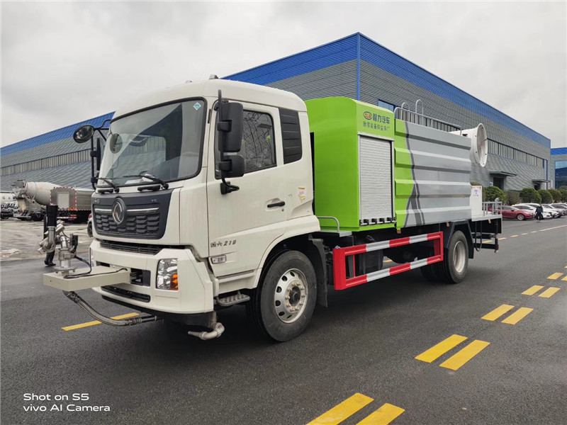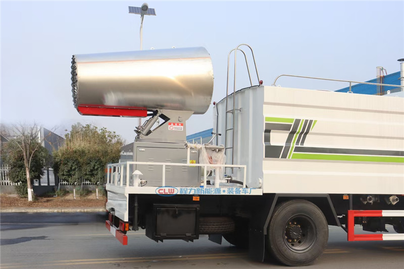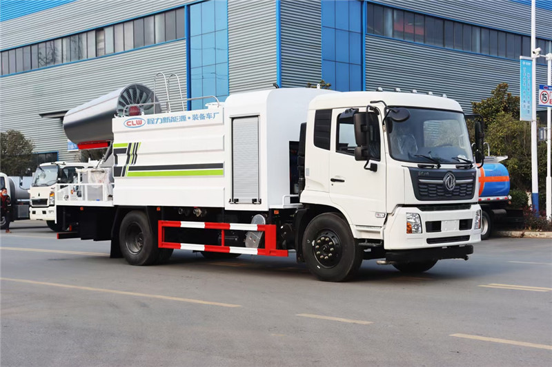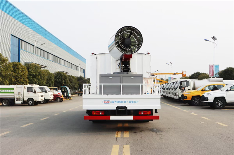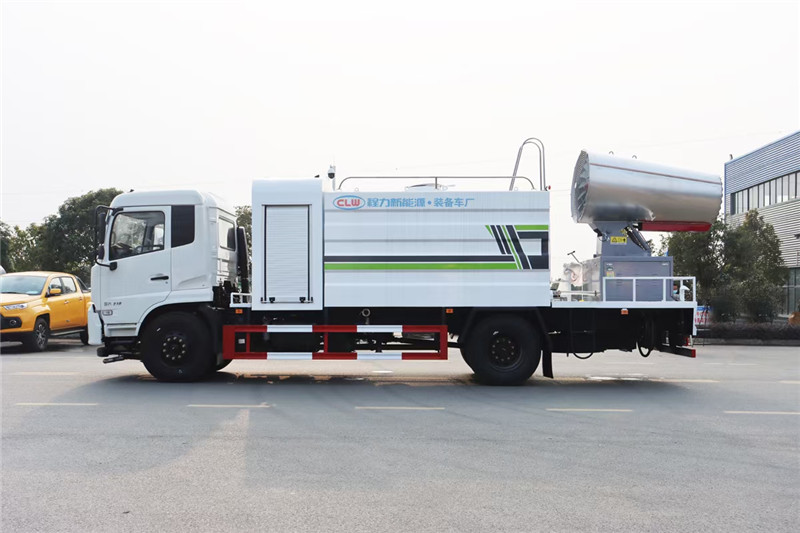 湖北程力國六東風天錦60-100米抑塵車(方罐)程力威牌CLW5181TDYD6型多功能抑塵車廠家配置: 湖北程力國六東風天錦抑塵車底盤配置:底盤采用東風天錦國六底盤,公告型號:CLW5181TDYD6,康明斯6缸ISB210馬力發(fā)動機,4700軸距,275真空胎,6檔變速箱,原裝空調,ABS。 湖北程力國六東風天錦抑塵車上裝配置:罐體容積11.3立方,罐體為方形罐,罐體內部做防腐,罐體鋼板采用Q235碳鋼鋼材,整車具備灑水車的一切功能(前沖、后灑、側噴、平臺高炮),氣動球閥控制灑水功能,水位報警器,標配億豐60/90水泵,自流閥及消防接頭各1個、水管2根。后平臺安裝一臺60米霧炮。 湖北程力國六東風天錦抑塵車霧炮參數(shù):CLW-100型60米,副發(fā)電機組功率50(Kw),風機功率15(Kw),不銹鋼多級離心泵功率5.5(Kw)。100米無線遙控操作,霧化距離60米(靜風室內距離)實際射程:(霧化射程會受濕度、溫度、風速等各方面天氣因素的影響,另外天氣干燥地區(qū)一部分在空中被蒸發(fā)掉)。 | 湖北程力國六東風天錦60-100米抑塵車(方罐)程力威牌CLW5181TDYD6型多功能抑塵車圖片價格: